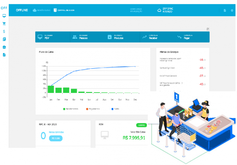 O ERP possui uma solução pioneira para emissão de Cupons Fiscais Eletrônicos (NFC-e), você não precisará ficar preso a impressoras fiscais, eliminando gastos desnecessários com equipamentos obsoletos. Utilizando o nosso PDV a sua loja estará atualizada e ganhará agilidade no processamento para processar as demandas de vendas.