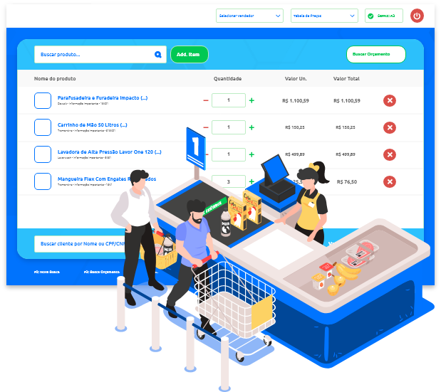 O ERP disponibiliza ferramentas de vendas amplas e funcionais, como emitir e controlar orçamentos, pedidos ou ordens de serviço, além de gerar e enviar catálogos virtuais dos seus produtos. Assim, você ganha velocidade no gerenciamento das informações e praticidade no controle da sua empresa.